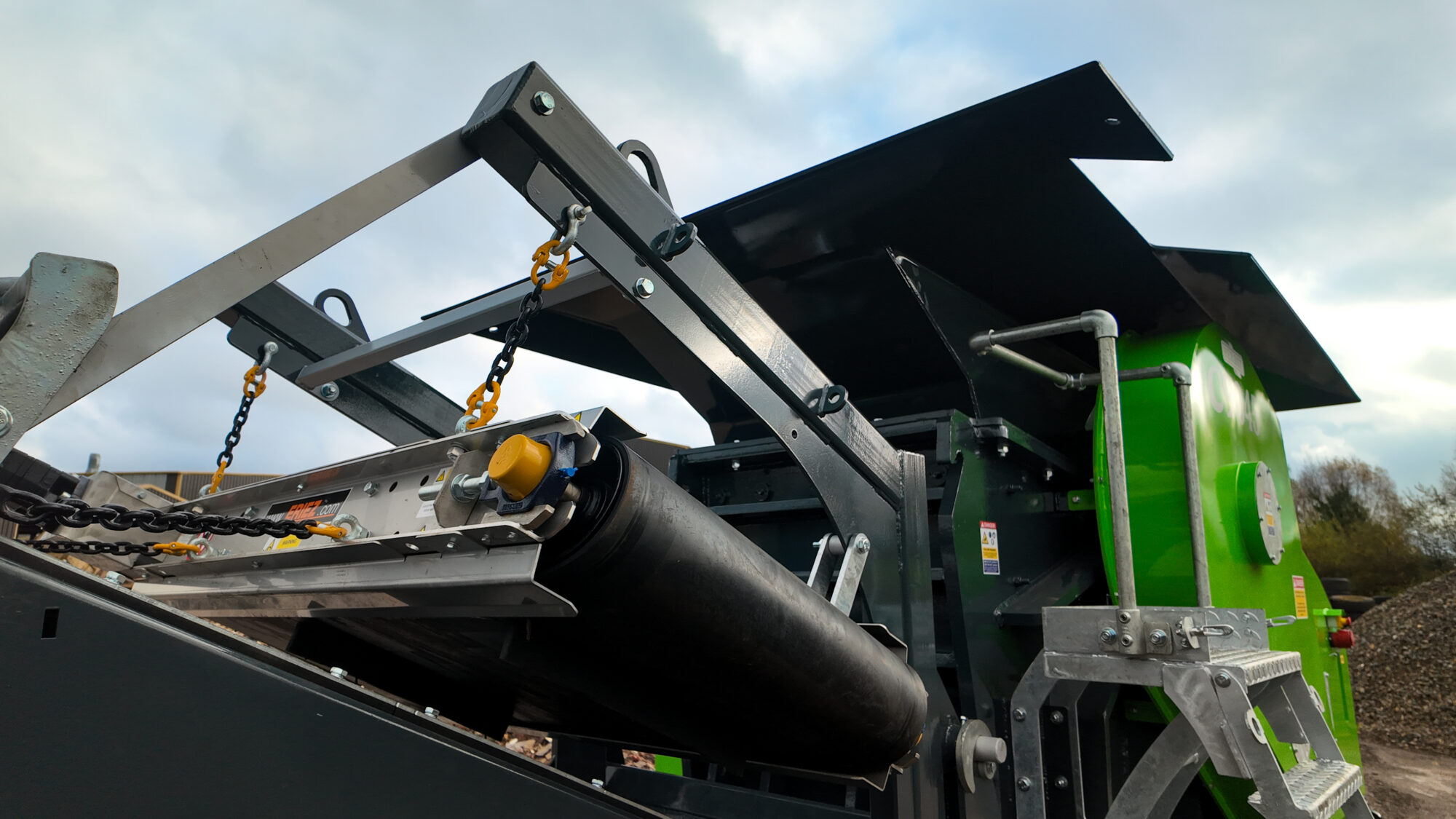 • Integrated overband magnet for ferrous metal separation