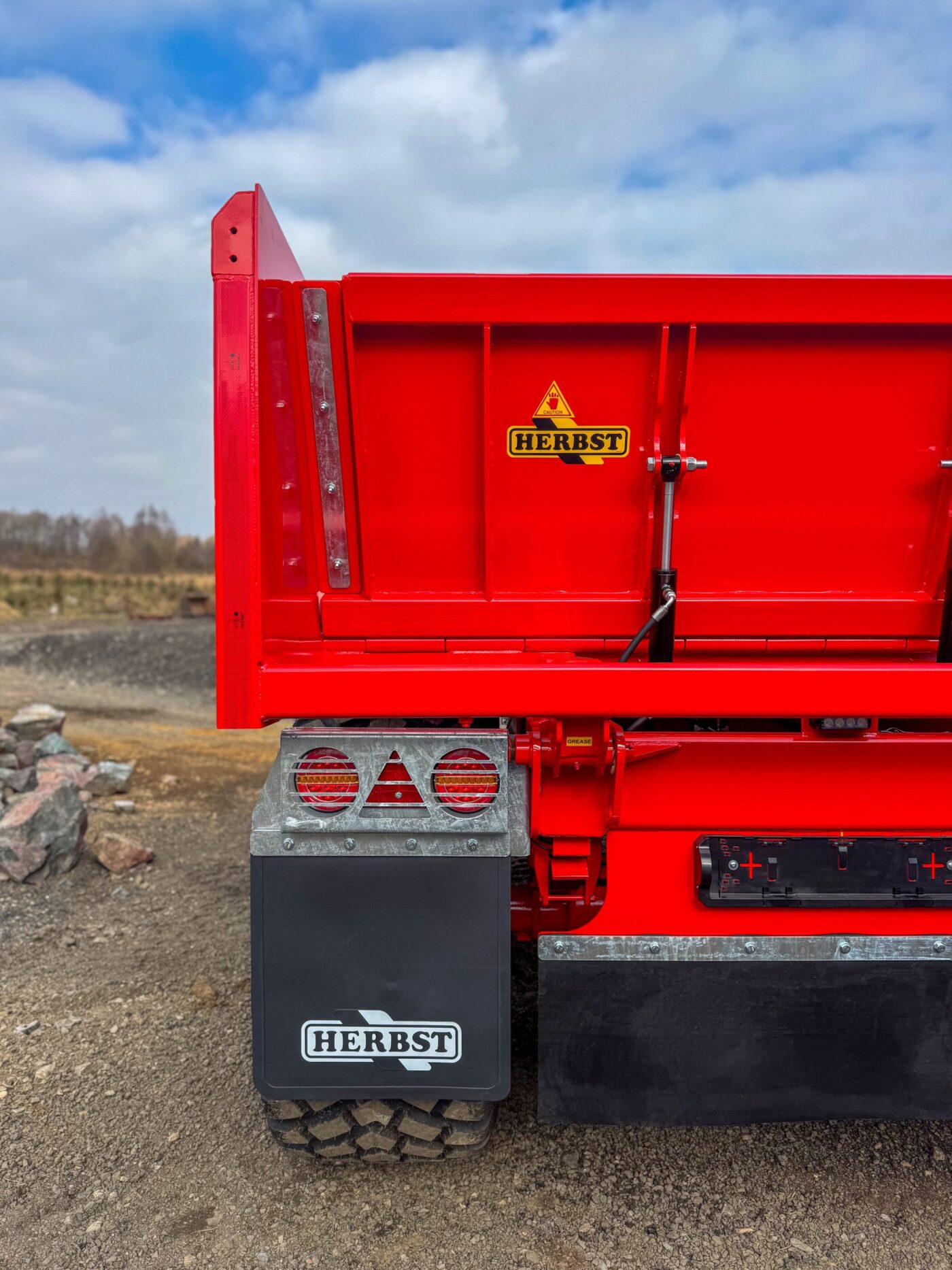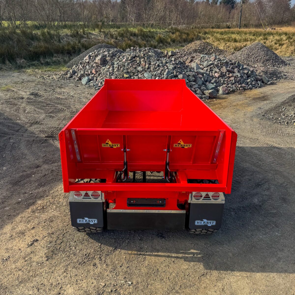 New Model / New Generation Dump Trailer. This comes with a wide, square bodied, high-capacity bin, with 10mm Floor, supported on a HD Box Section Chassis. With 2 x Tipping Cylinders, this provides stability for the high tipping body. The hydraulic operated Drop-Down Rear Door means no obstruction when offloading material.